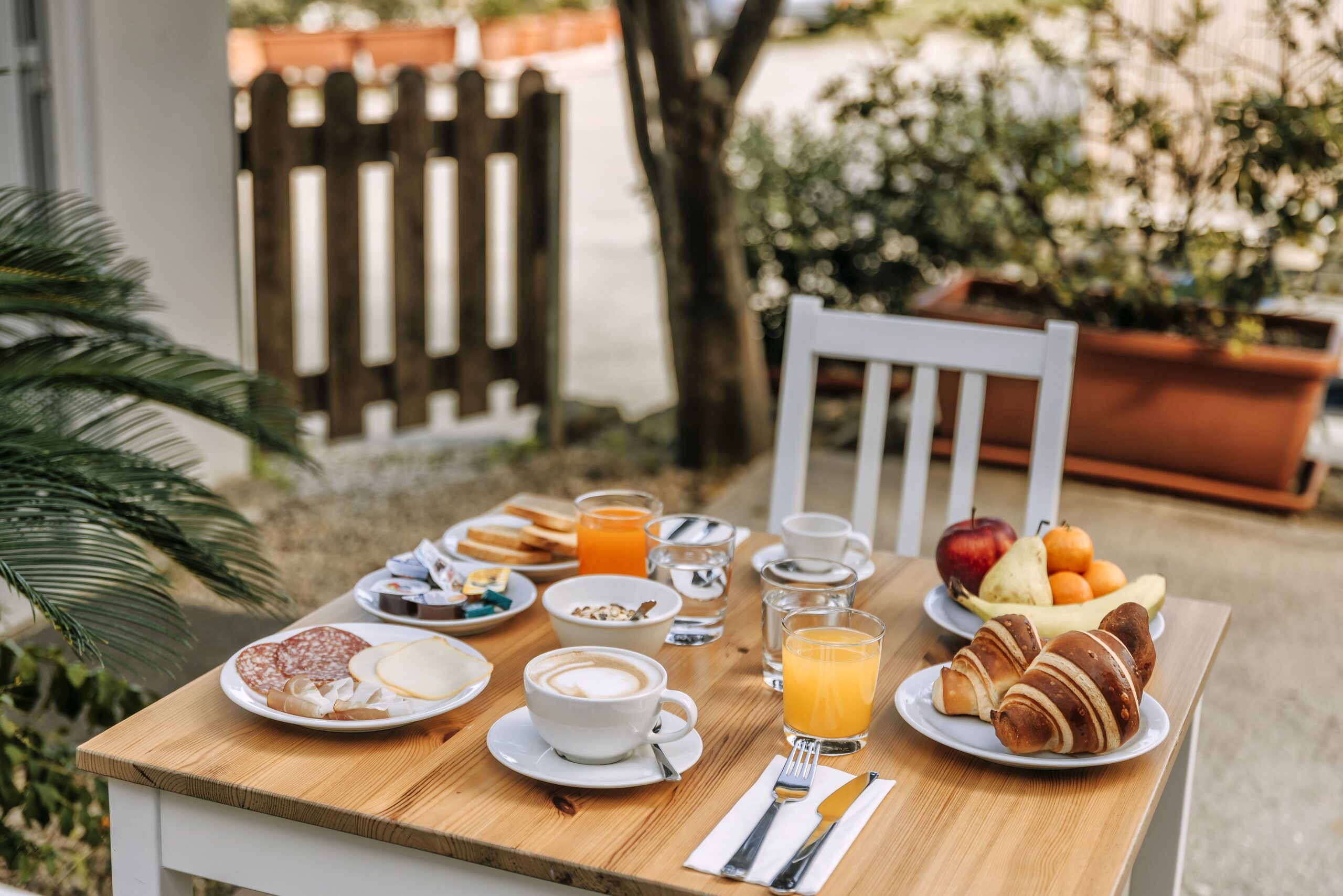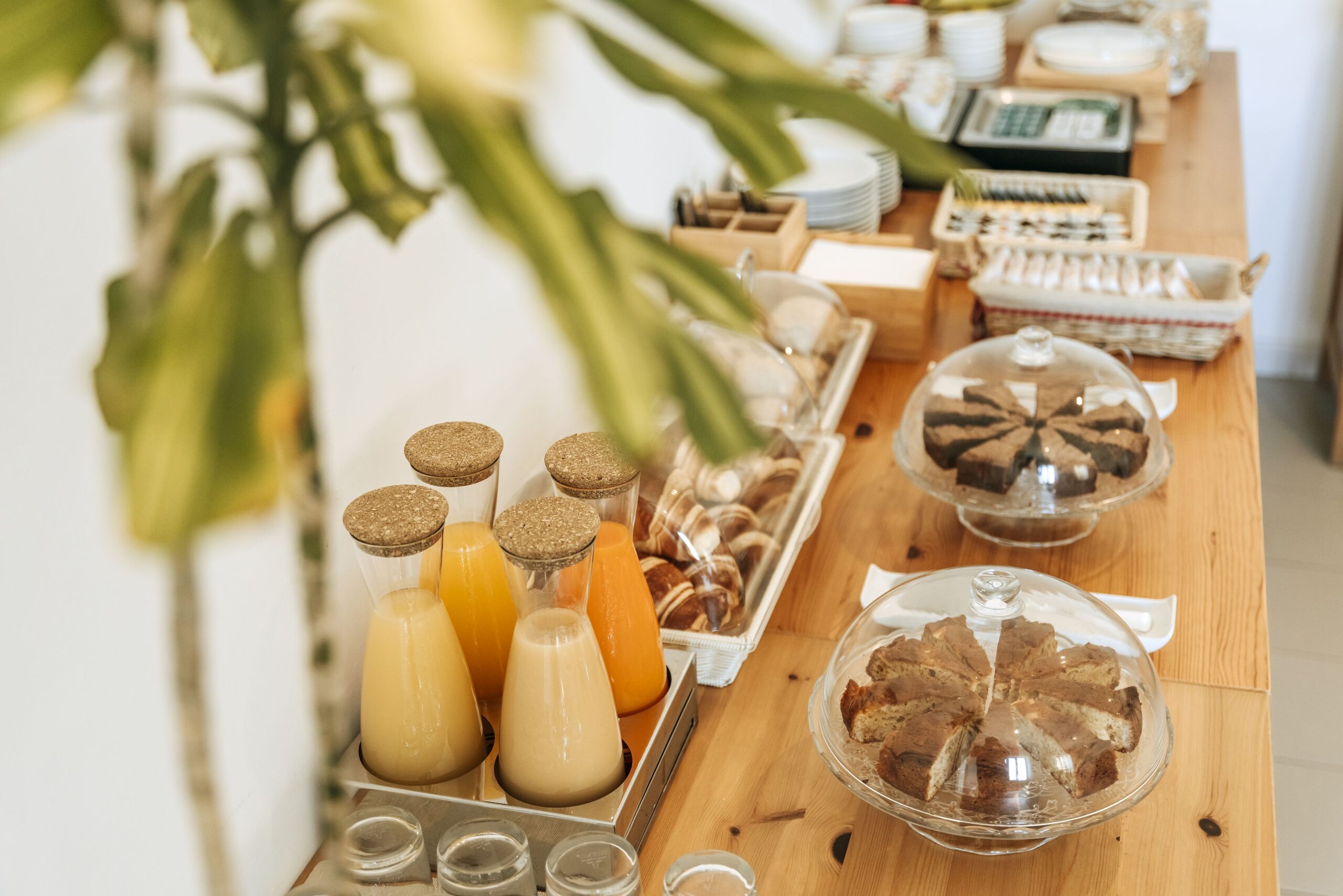 To start the day with energy and taste, we offer our guests a rich and carefully selected range of products. You will find a rich selection including fresh juices, hot drinks (tea, coffee, cappuccino), seasonal fresh fruit (such as apples, bananas, and oranges), and an inviting variety of baked goods and bread.